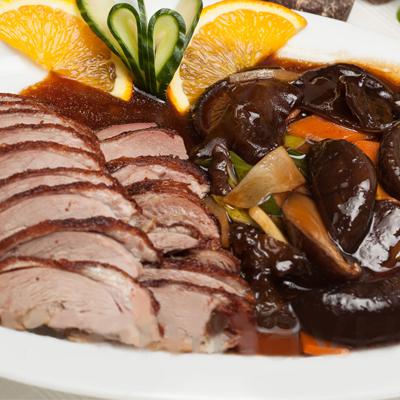 pato salteado con bambu y setas chinas